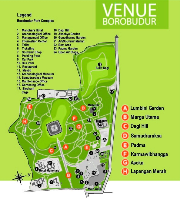 Berada di jalur utama menuju Candi Borobudur, memberikan pengalaman yang megah karena dapat melihat Candi Borobudur secara proposional. Posisi candi Borobudur yang telihat lebih tinggi memberikan kesan yang berbeda pada setiap event.